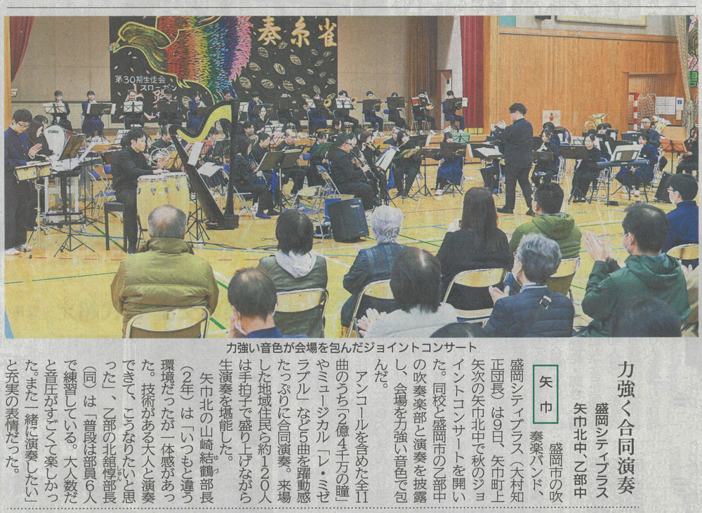 矢巾町立矢巾北中学校 吹奏楽部、盛岡市立乙部中学校 吹奏楽部とのジョイントコンサートを開催します。